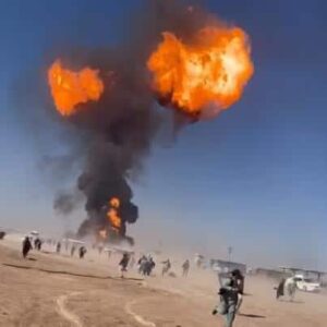 Dozens of tankers carrying petroleum products caught fire at Islam Qala customs in Herat province on Saturday.