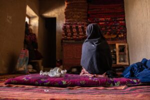 “I woke up and found myself far away [from our tent] with my family members. Everyone was screaming and the children were screaming,” Mahmoud says. “The mosque’s rubble had flattened our tents completely.”
