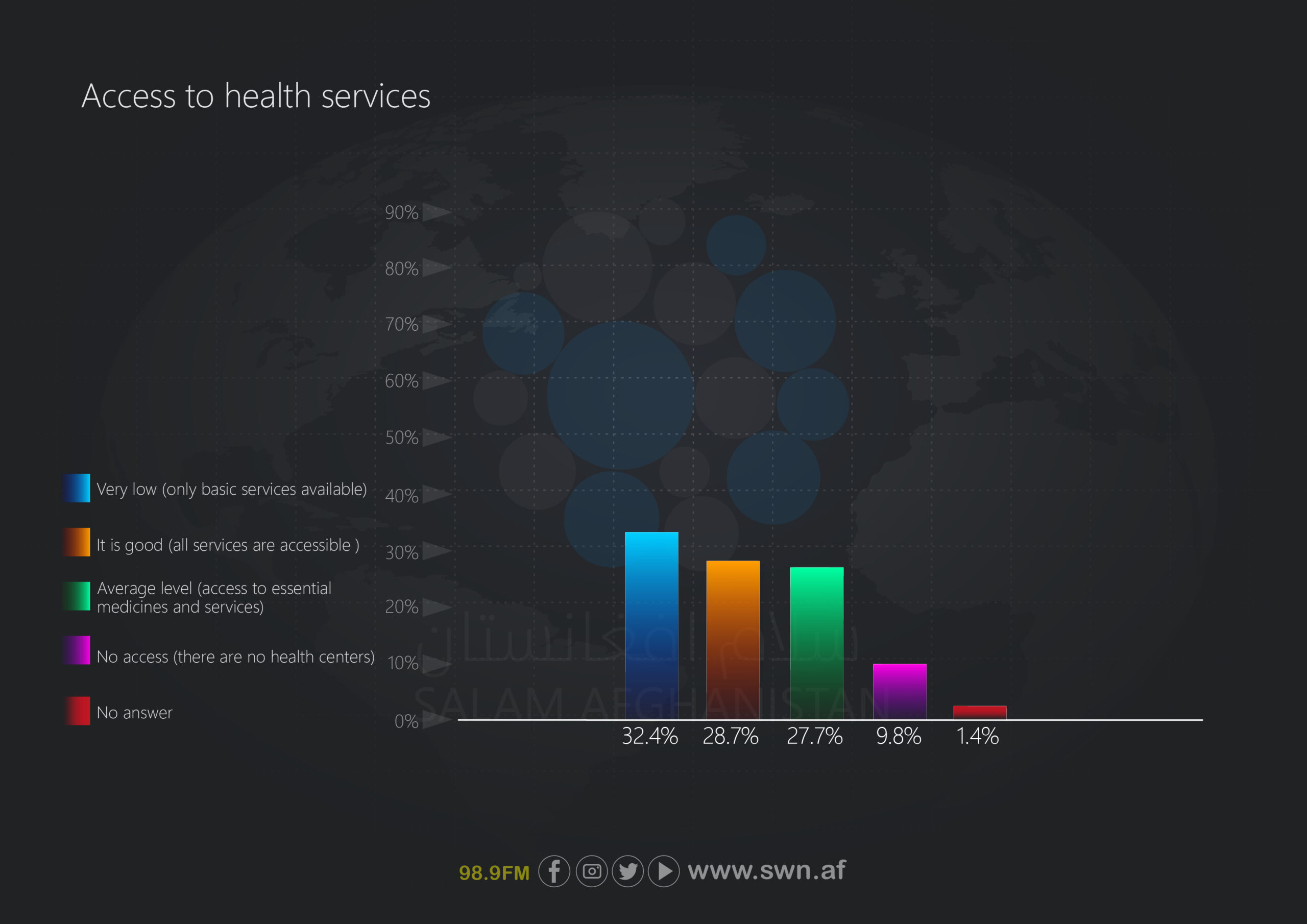Access to healthcare varied among respondents. A total of 344 individuals (32.4%) had very limited access and could only obtain basic services, 294 individuals (27.7%) had moderate access, 304 individuals (28.7%) had good access, and 104 individuals (9.8%) had no access at all.