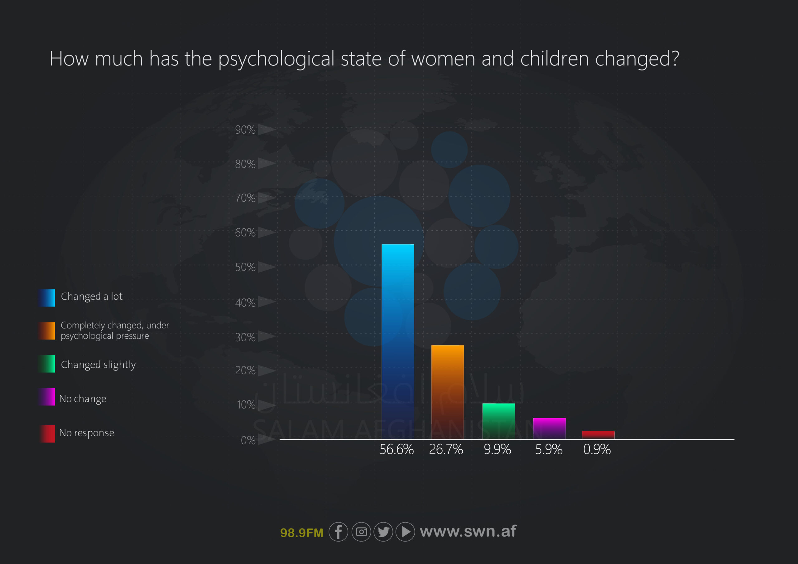 Psychological changes were very severe. A total of 600 individuals (56.6%) experienced significant changes, and 283 individuals (26.7%) were under extreme psychological stress. Meanwhile, 105 individuals (9.9%) experienced minor changes, and 63 individuals (5.9%) reported no psychological changes.