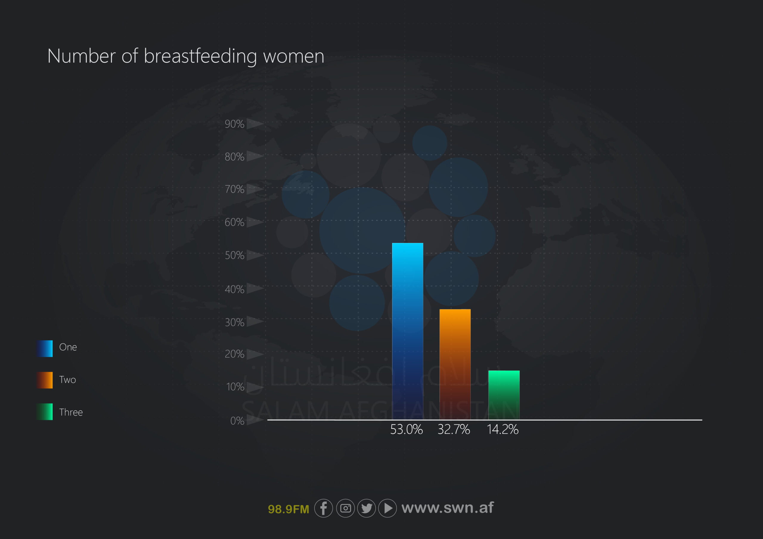 Among the families with breastfeeding women, 407 families (53% of the total) had one breastfeeding woman, 251 families (32.7%) had two, and 72 families (9.3%) had three.