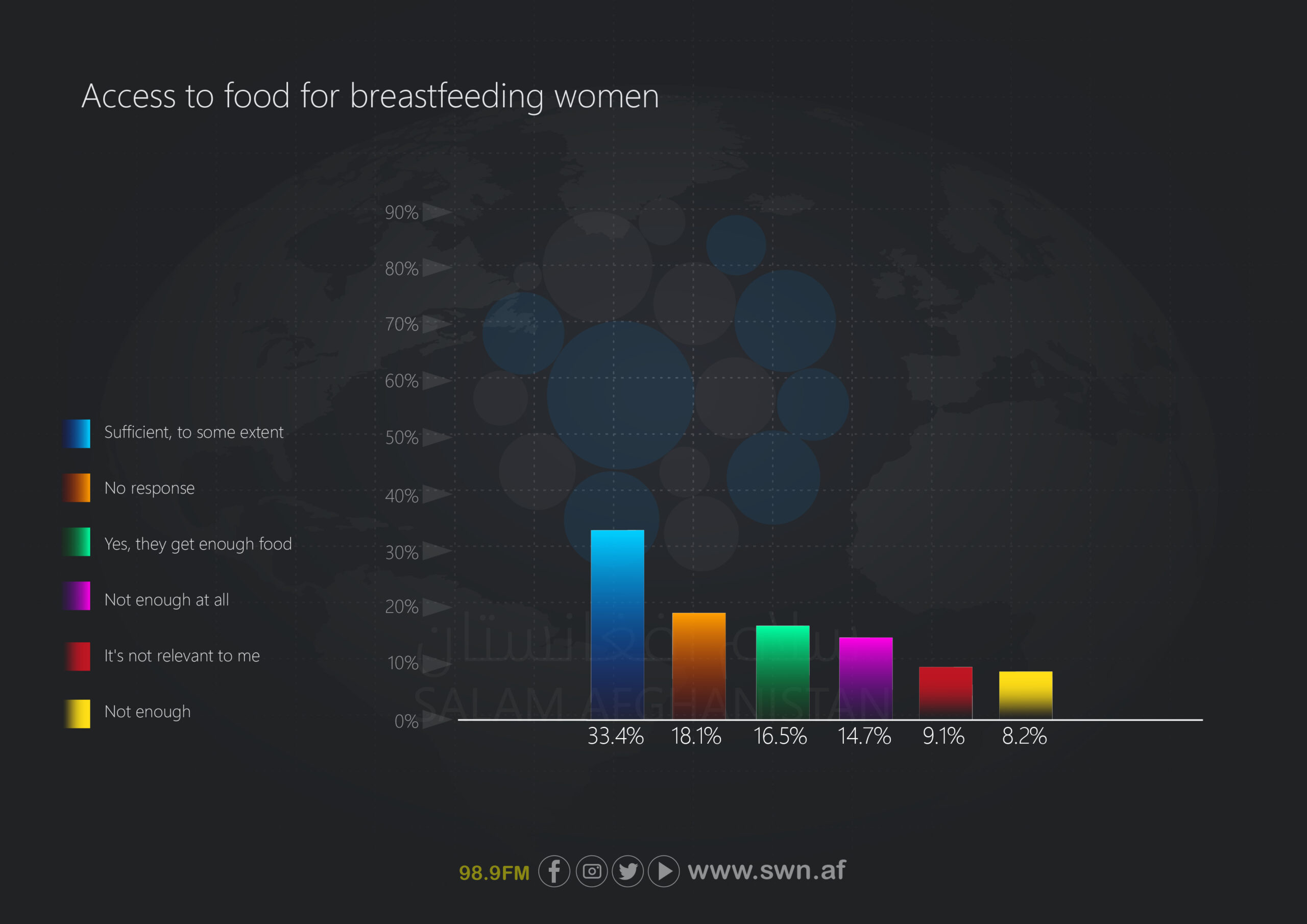 Food access varied among breastfeeding women. A total of 354 individuals (33.4%) had sufficient food, 175 individuals (16.5%) had adequate food, 156 individuals (14.7%) reported that food was completely insufficient, and 87 individuals (8.2%) reported that it was not enough.