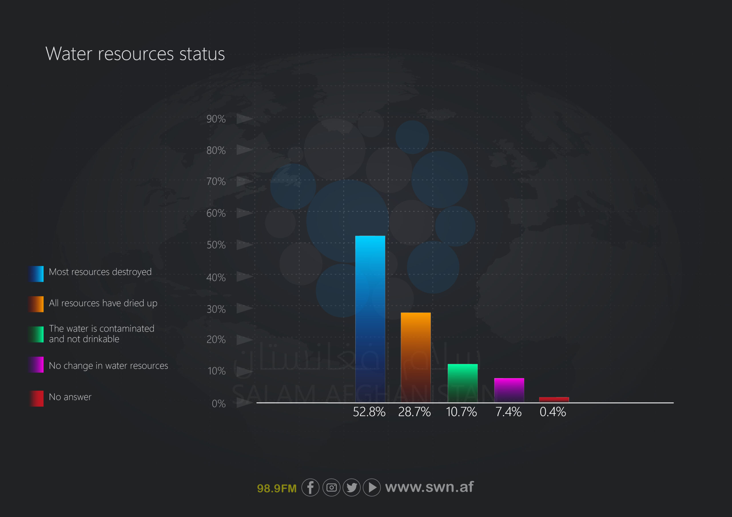 The water situation in the region was critical. A total of 560 respondents (52.8%) reported that most water sources were destroyed, 304 respondents (28.7%) reported that all water sources had dried up, and 114 respondents (10.7%) reported that the water had become contaminated and undrinkable. Only 79 respondents (7.4%) reported no change in water resources.