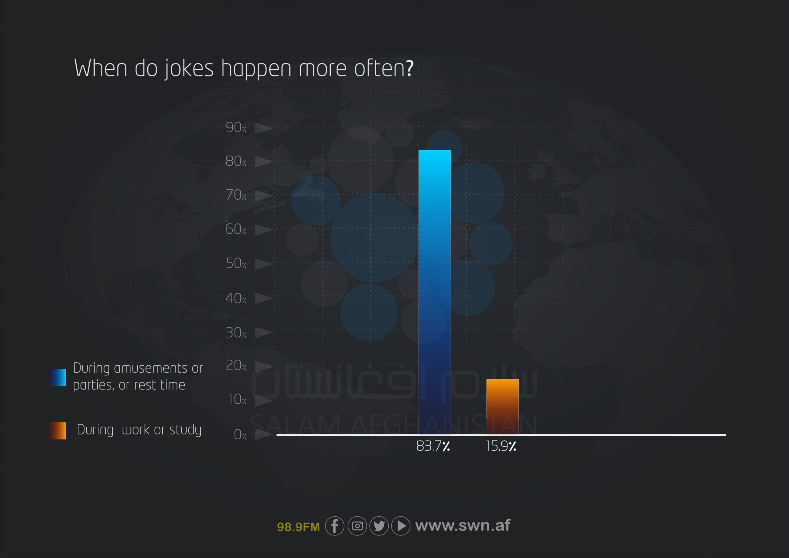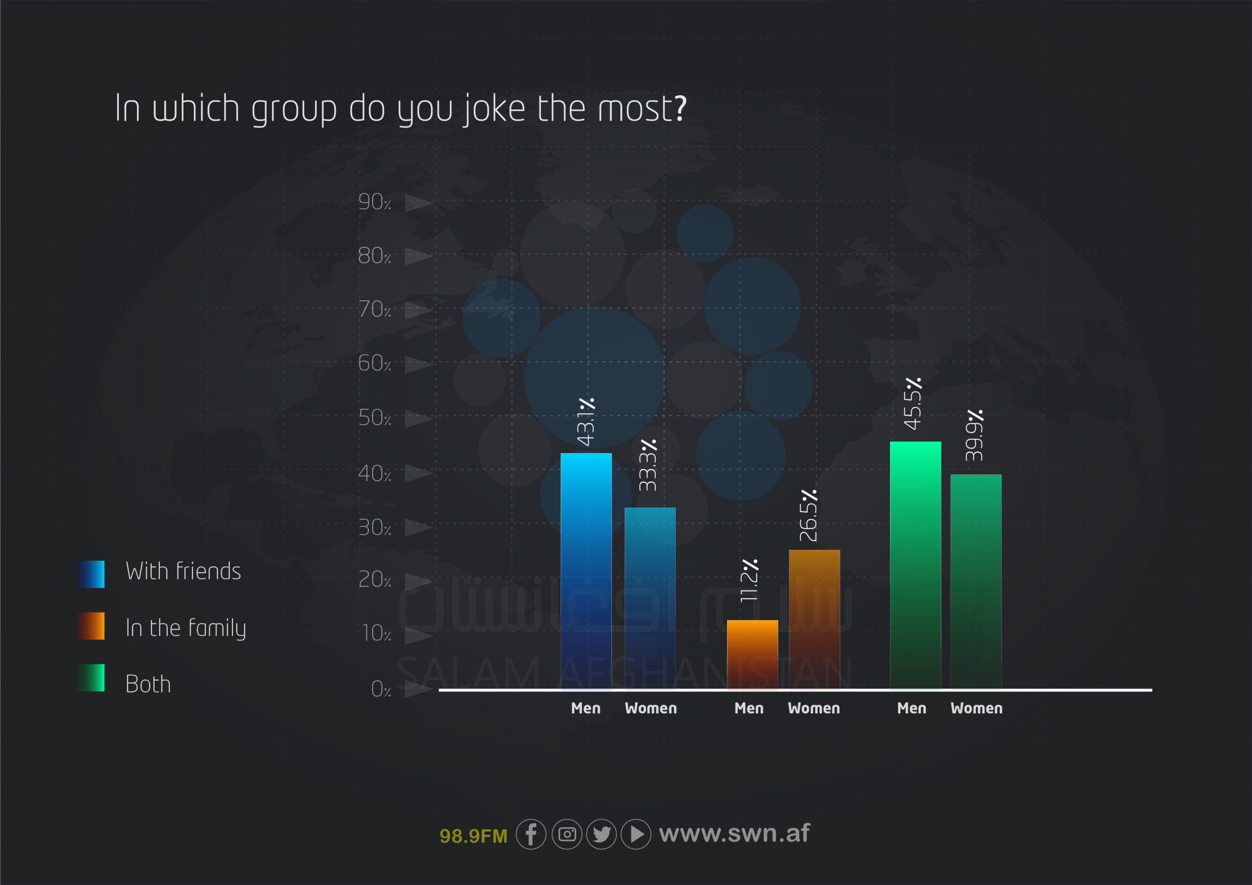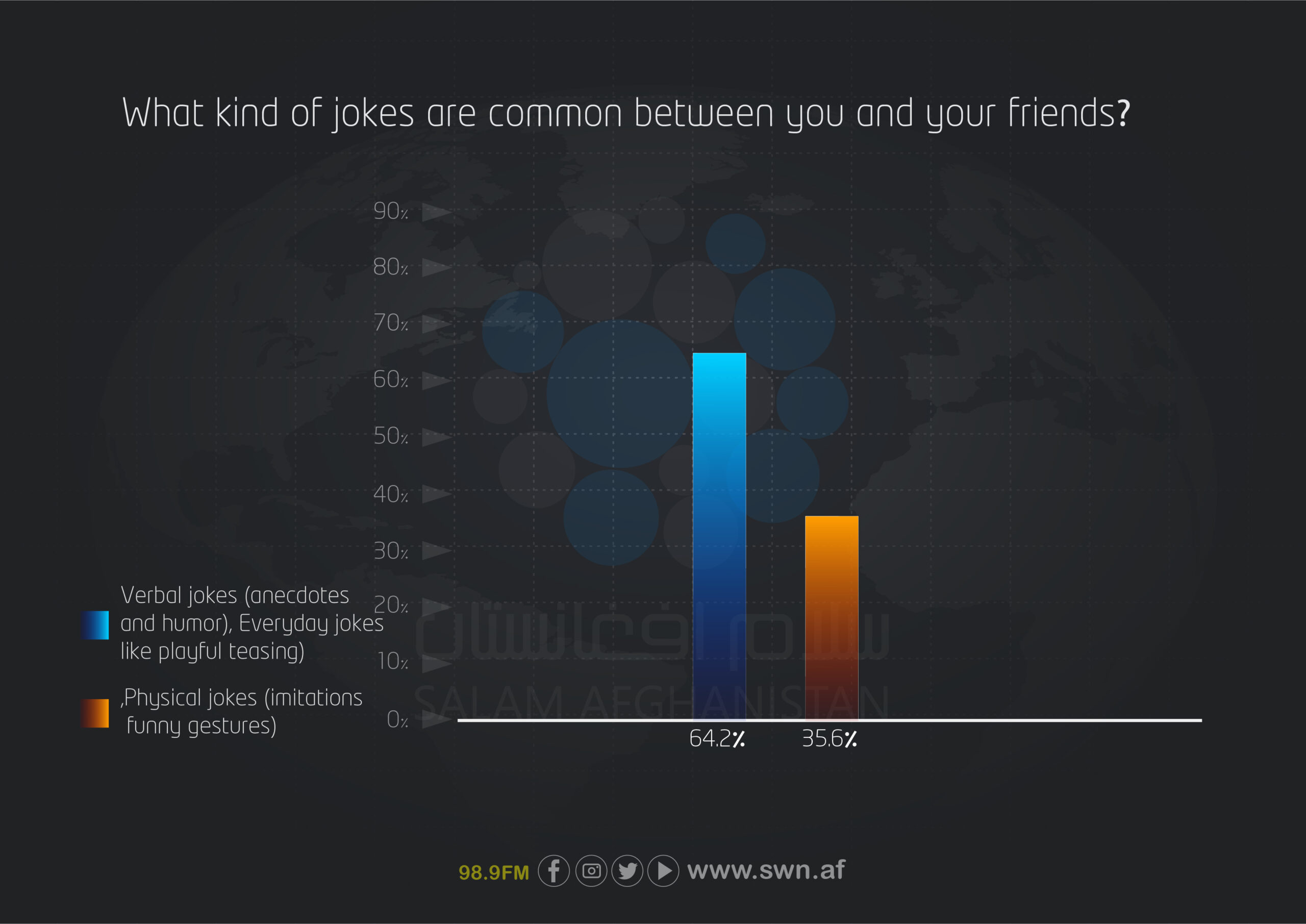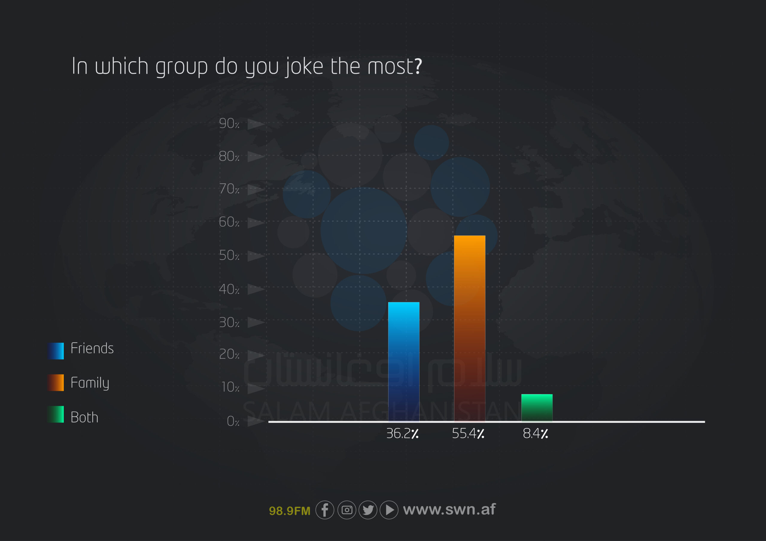 The findings of this survey indicate that humor and happiness among Afghan youth continue to play an important role despite existing challenges. Key points include: