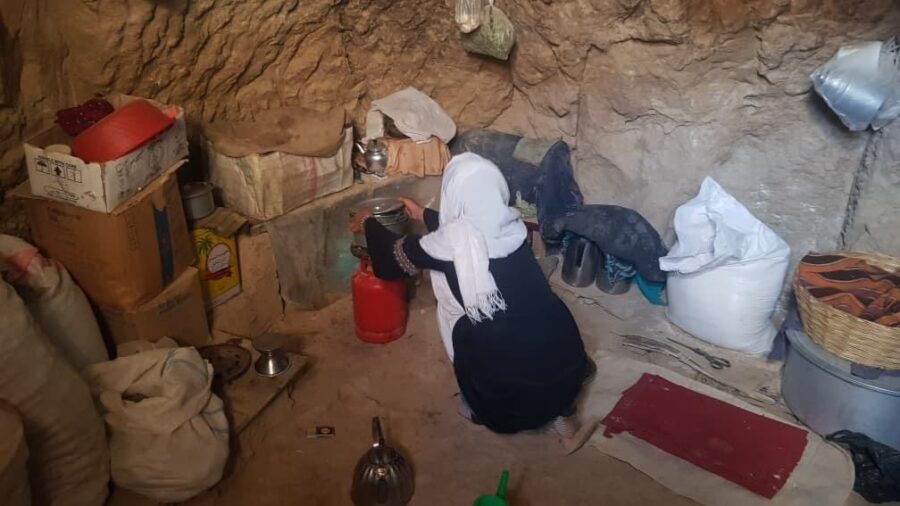 آمنه‌ی ۴۰ساله، در این باره می‌گوید: «اما بهار سال عقرب دارد، راحت نیستم. دولت به ما کمک کند، کار باشد، برق بیاید، مغاره‌ی ما در بلندی است، راه درست نداریم، سیلاب دارد.»