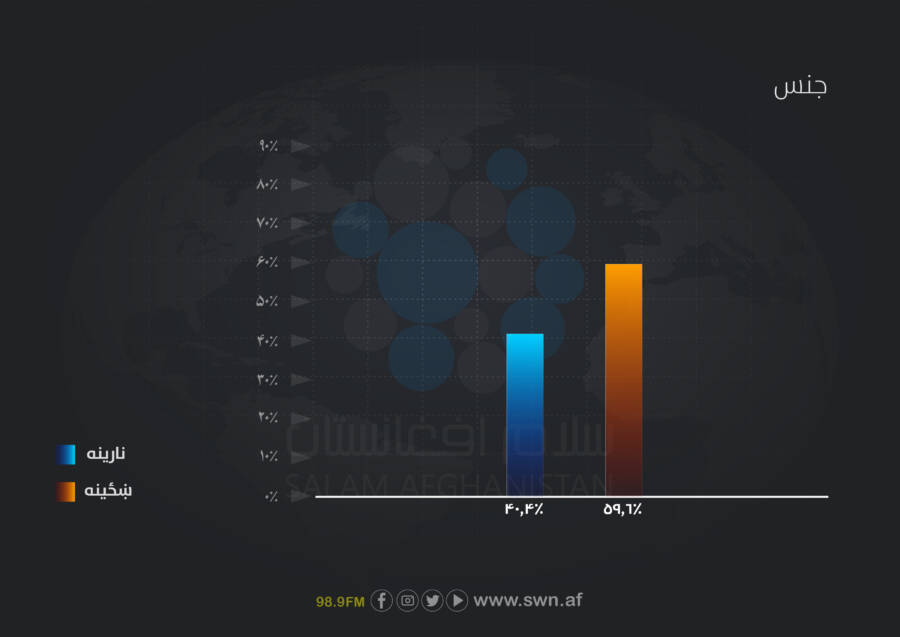 د هغو کسانو له ډلې چې سلام‌‌وطندار ورسره مرکې کړي، ۵۹.۶ سلنه یې ښځې او ۴۰.۴ سلنه یې نارینه وو.