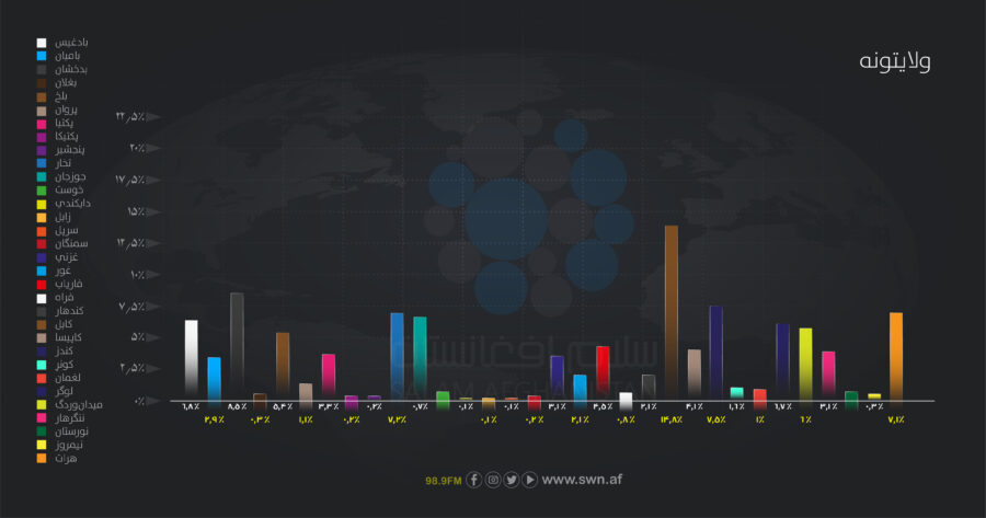 بادغیس په ۹۷سلنه زیانمنونکو او ۹۹سلنه لوړې کچې په درلودو سره تر ټولو ډېر اغېزمن شوی، بدخشان بیا ۶۷سلنه زیانمنونکو ولایتونو په ډله کې لږ اغېزمن ولایت دی.