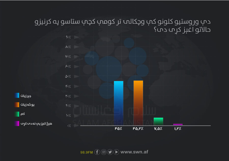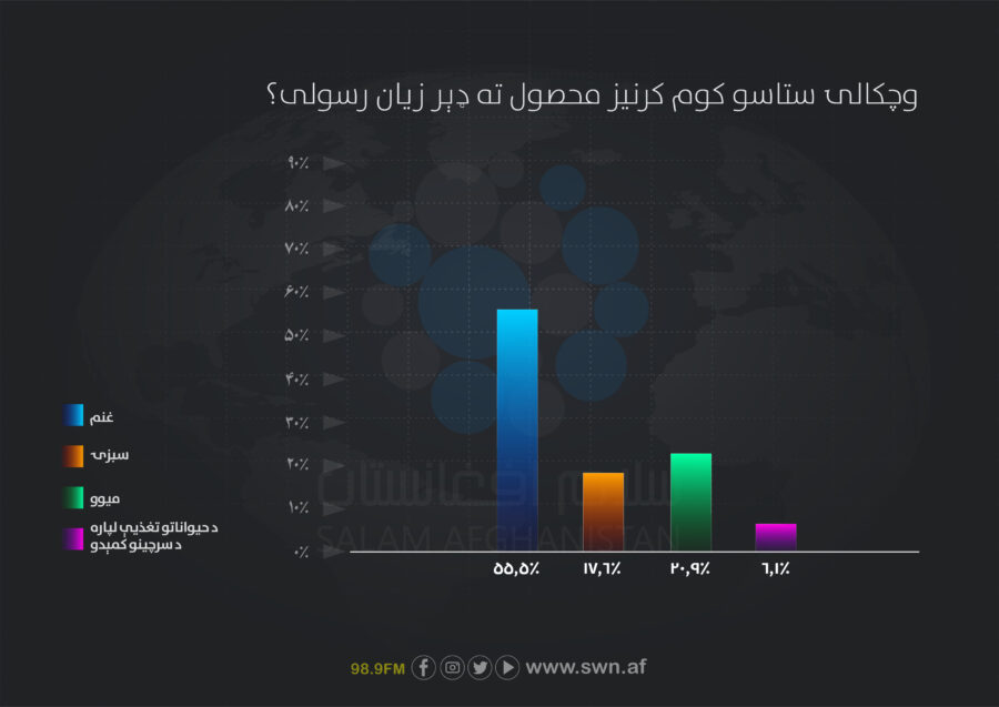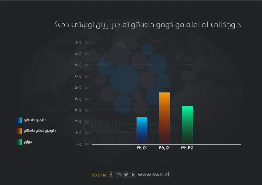 په دې سروې کې راغلي چې له ۸۰ سلنې زیاتو بزګرانو د وچکالۍ مستقیم اغیز تجربه کړی او له ۹۰ سلنې زیاتو هغو د وچکالۍ د شدّت لوړې کچې راپور ورکړی دی.