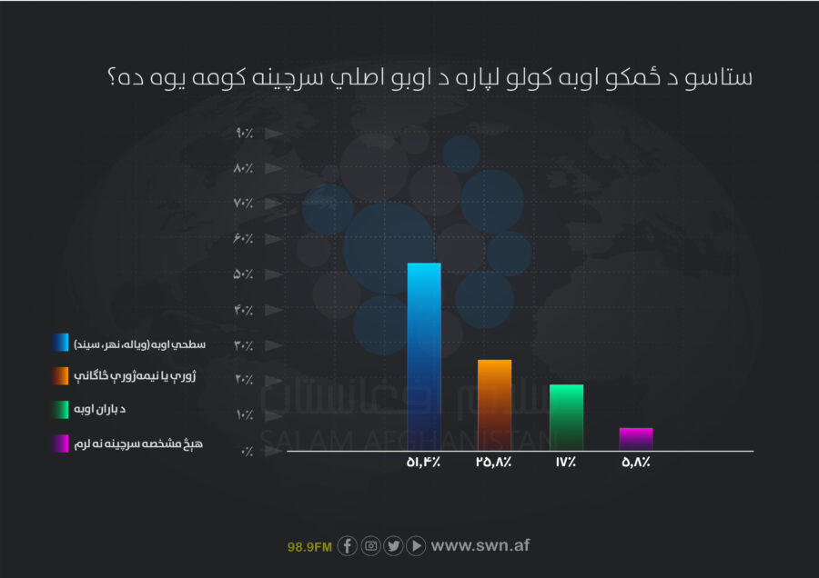 ۶۲.۶۹٪ کروندګرو د اوبو سرچینو له سخت کمښت خبر ورکړی او ۱۰.۴۵٪ هغو ویلي چې د دوی سرچینې په بشپړه توګه وچې شوي دي.