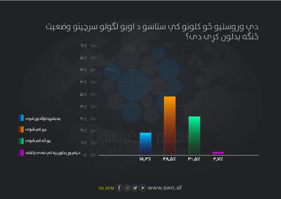 اکثریت ۵۳.۸۵٪ کروندګرو د کرنیزو محصولاتو ډول بدل کړی، ۲۱.۱۵٪ نوې څاهګانې کیندلي او یوازې ۷.۶۹٪ هېڅ ډول اقدام نه دی کړی.