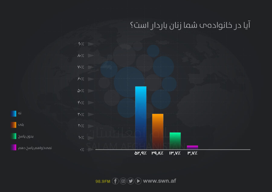 - در بارهی زنان باردار: ۱۳.۷ درصد بدون پاسخ + ۳.۷ درصد «نمیخواهم پاسخ دهم»