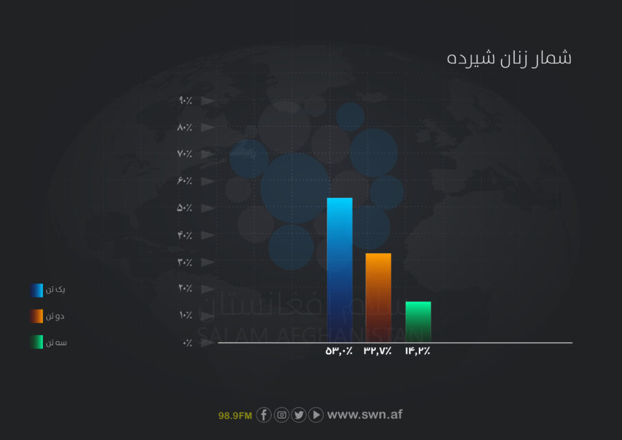 از خانوادههایی که زنان شیرده داشتند،۴۰۷ خانواده (۵۳ درصد از کل) یک تن، ۲۵۱ خانواده (۳۲.۷ درصد) دو تن و ۷۲ خانواده (۹.۳ درصد) سه تن زن شیرده داشتند.