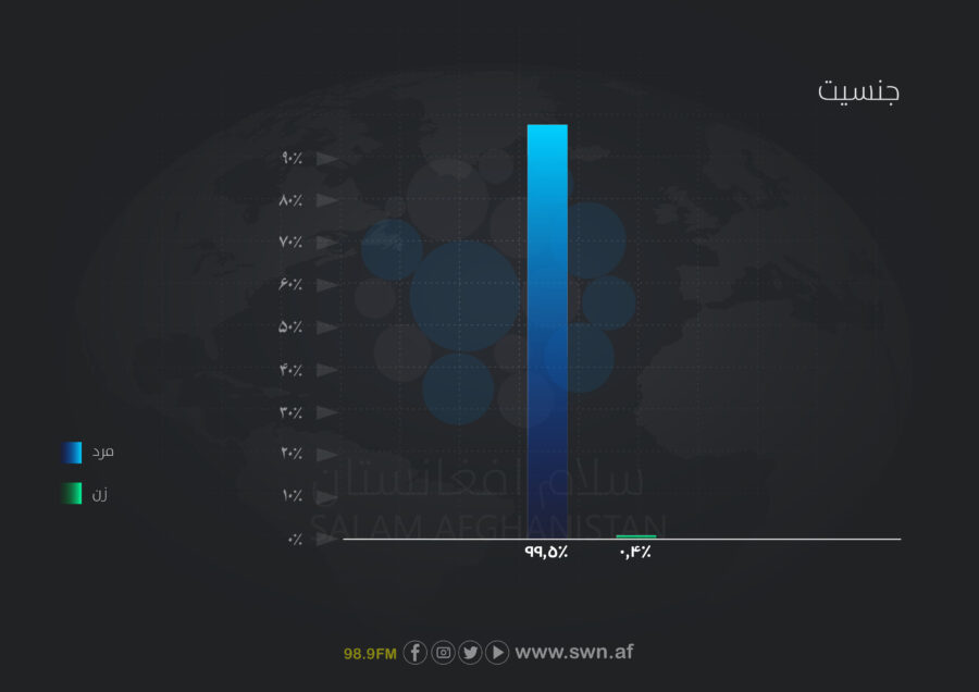 بیشتر پاسخدهندگان مرد بودند (۱۰۵۷ تن، ۹۹.۵ درصد). تنها چهار زن (۰.۴ درصد) پاسخ دادند.