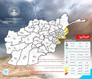 ریاست هواشناسی وزارت ترانسپورت و هوانوردی امارت اسلامی، از احتمال بارندگیهای شدید، رعدوبرق، بادهای شدید همراه با گردوخاک و سرازیرشدن سیلاب در شش ولایت هشدار داده است.
