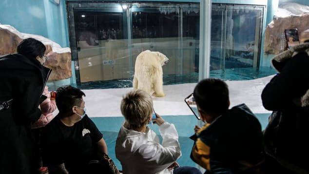 در تصویرها و ویدیو‌هایی که از سوی رسانه‌های چینی نشر شده است، دیده می‌شود که دو خرس قطبی درون یک محیط بسته با یخ مصنوعی و حوض‌چه‌های کوچک آب در معرض دید مردم قرار گرفته‌اند.