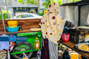 ساعت ۱۲:۰۰ توش وقتی، هوا هم جوده ایسیق؛ بیراق هوانینگ ایسیقلیگی سیما اوچون درد و قیینچیلیکلریدن کوپ ایمس. یوزیدن یریمینی ماسک بیلن یاپگنی بیرحالده، پیشانیسیگه توشگن اجینلر بیللی و رنگی اوچیب کیتگن کییم، اونینگ حیاتیدهگی قیینچیلیکلرنی بیان قیلهدی.