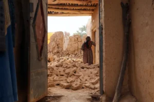 زلزله نتیجهسیده ییتیشگن ویرانلیکلر آرهسیده، یاشگه توله کوزلری بیلن قیزیدن قالگن اینگ کیچیک بیر نشانهنی اختریب یوریگن. او، یوز بیرگن زلزله جریانیده ۱۰ یاشر قیزینینگ قوتقره آلمهگنینی بیان قیلهدی.