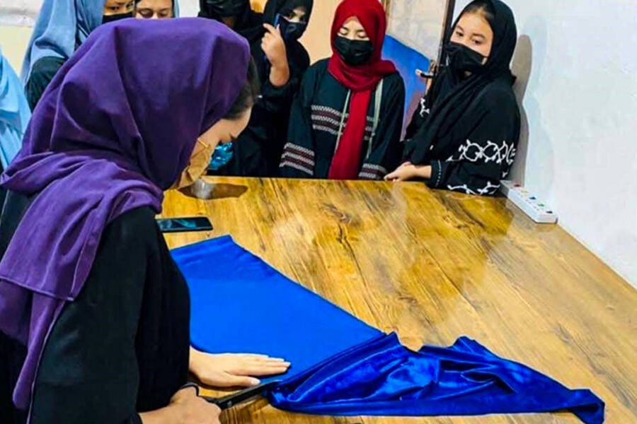 کابل بیلیم یورتی اداره و پالیسی عامه فاکولتهسی طلبهسی بولمیش زهرا فیضی، قیزلر یوزیگه بیلیم یورتلر یاپیلگنیدن کیین اوشبو ایشخانه گه تیکووچیلیک اورگهنیش اوچون کیلیب و اورگهنیش دورهسینی بیتیریگنیدن کیین، حاضر ایسه بو ییرده ایش اورگتووچی صفتیده ایش بیلن شغللگن. اونینگ ایتیشیچه، حاضر باشقه قیزلرگه اندازه آلیش، قیچی قیلیش و کییم تیکیشنی اورگتهدی.