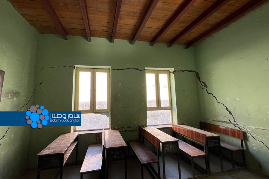 باشقه بیر تاماندن، مذکور تومندهگی دولتی مکتبلردن بیرینینگ مدیرهسی سلما نوزادهنینگ سلاموطندار گه ایتیشیچه، مهندسلر صنفلرنینگ جدی شکلده چپه بولیش تهدید بیلن روپهره بولگنی اوچون هیچ کیمنینگ مکتب بنالریگه بارمسلیگینی ایتگن؛ بیراق مناسب جای یوقلیگی سبب، اوقووچیلرگه بوزیلگن صنفلرده درس بیریشگه مجبورلر. «مهندسلر، اوشبو مکتب بنالریگه هیچ کیمنینگ بارمسلیگینی ایتگن، چونکه جدی تهدید دیر. جای یوقلیگی قیینچیلیگی سبب، اوقووچیلرگه بو ییرده درس بیریب و امتحانلرینی آلیشگه مجبورمیز.»