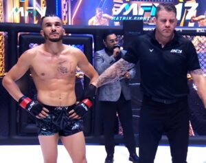 قهرمان شاهین، خلقارا مویتای (RWS) سطحیده مسابقه بیرگن افغانستاننینگ مویتای بیرینچی سپورتچیسی بولیب و بیرینچی لحظهلرنینگ ایکّینچی روندیده رقیبینی ایاق ضربهسی بیلن ناکاوت قیلدی.